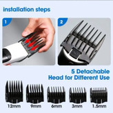 اصلاح مو با 5 اندازه, صفحه نمایش LED, دوام باتری تا حدود 2 ساعت, موتور پر سرعت, موتور با صدای کم 65 دسی بل, تنظیم سرعت در 4 حالت, قابلیت شست و شوی تیغه