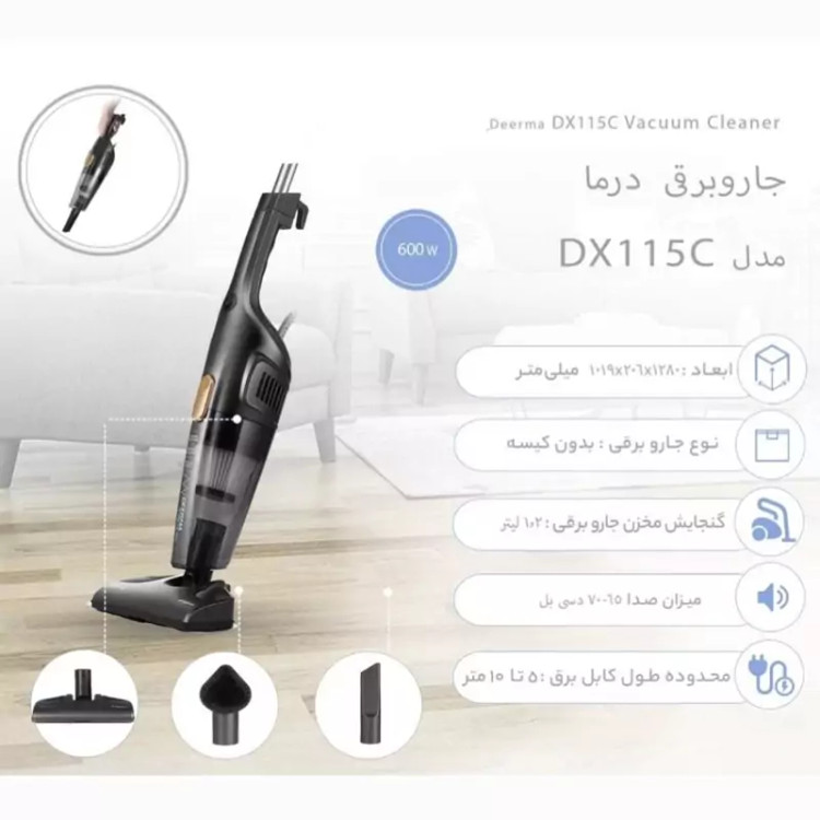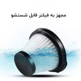 توان مکش 14000 پاسکال قدرت موتور 400 وات میزان صدا کمتر از 75 دسی بل ابعاد 57*14.8*12.8 سانتی متر وزن 1.79 کیلوگرم قابلیت جذب مایعات خیر فیلتر بهداشتی بله نوع فیلتر خروجی Hepa پاکت جارو برقی خیر نشانگر پر بودن مخزن خیر قابلیت کار کردن تمام اتوماتیک خیر قابلیت کار کردن به صورت برنامه ریزی شده خیر قابلیت تشخیص خودکار مانع خیر قابلیت شارژ خودکار خیر قابلیت شناسایی پله خیر کنترل از راه دور خیر فیلتر گرد و غبار بله قابلیت دیوار مجازی خیر میزان شارژدهی باتری فاقد باتری سایر امکانات طول سیم برق : 5 متر / دارای فیلتر قابل شست و شو / قابل استفاده به صورت دستی و ایستاده / ظرفیت مخزن زباله: 1.2 لیتر / ارای سه سری متفاوت جهت تمیزکاری موثر انواع سطوح و گوشه ها / مجهز به برس نرم برای از بین بردن مایت ها و موهای روی مبلمان / چرخش 90 درجه برس اصلی / دارای سیستم خنک کننده سریع خروجی هوا