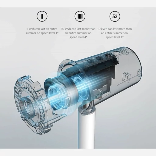 پنکه Fan 2 Lite دارای یک موتور براشلس DC کم مصرف و پر قدرت 38 واتی ست که شیائومی ادعا میکنه در تمام طول تابستان فقط 1 کیلووات ساعت برق مصرف میکنه. ولتاژ ورودی برای 22٫ تا 230 ولت است که با یک کابل برق 160 سانتی متری به پریز برق متصل میشه. یک فن 7 پره، نسیمی خنک و طبیعی تا برد 12 متر و صدای 58db (روی حالت ماکزیمم ) برای شما به ارمغان میاره. این پنکه ی هوشمند یک مکمل برای دیگر وسایل سرمایشی، اسپلیت و تصفیه هوای شیائومی ست.